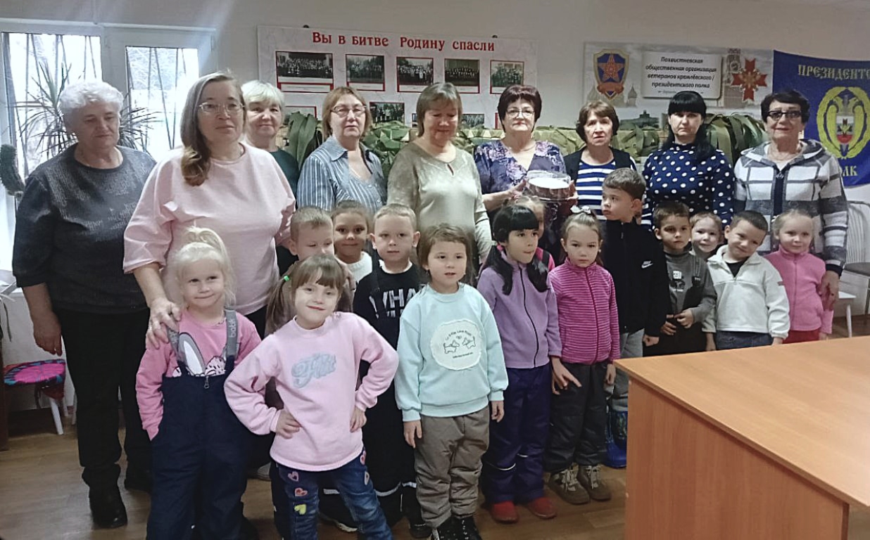 Встреча началась с беседы. Дети с интересом узнали о работе Совета ветеранов, волонтёрской деятельности даже смогли увидеть, как ловко плетутся маскировочные сети. Особенно трогательным моментом стало вручение подарков. Дети с гордостью и волнением дарили свои рукотворные сюрпризы. Они поздравили ветеранов с праздником, пожелав им крепкого здоровья и хорошего настроения. В ответ коллектив Совета ветеранов выразил благодарность ребятам за их теплые поздравления.