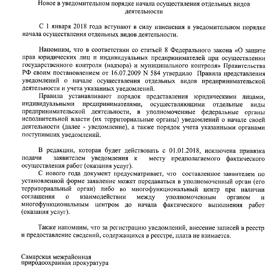 Новое в уведомительном порядке начала осуществления отдельных видов деятельности