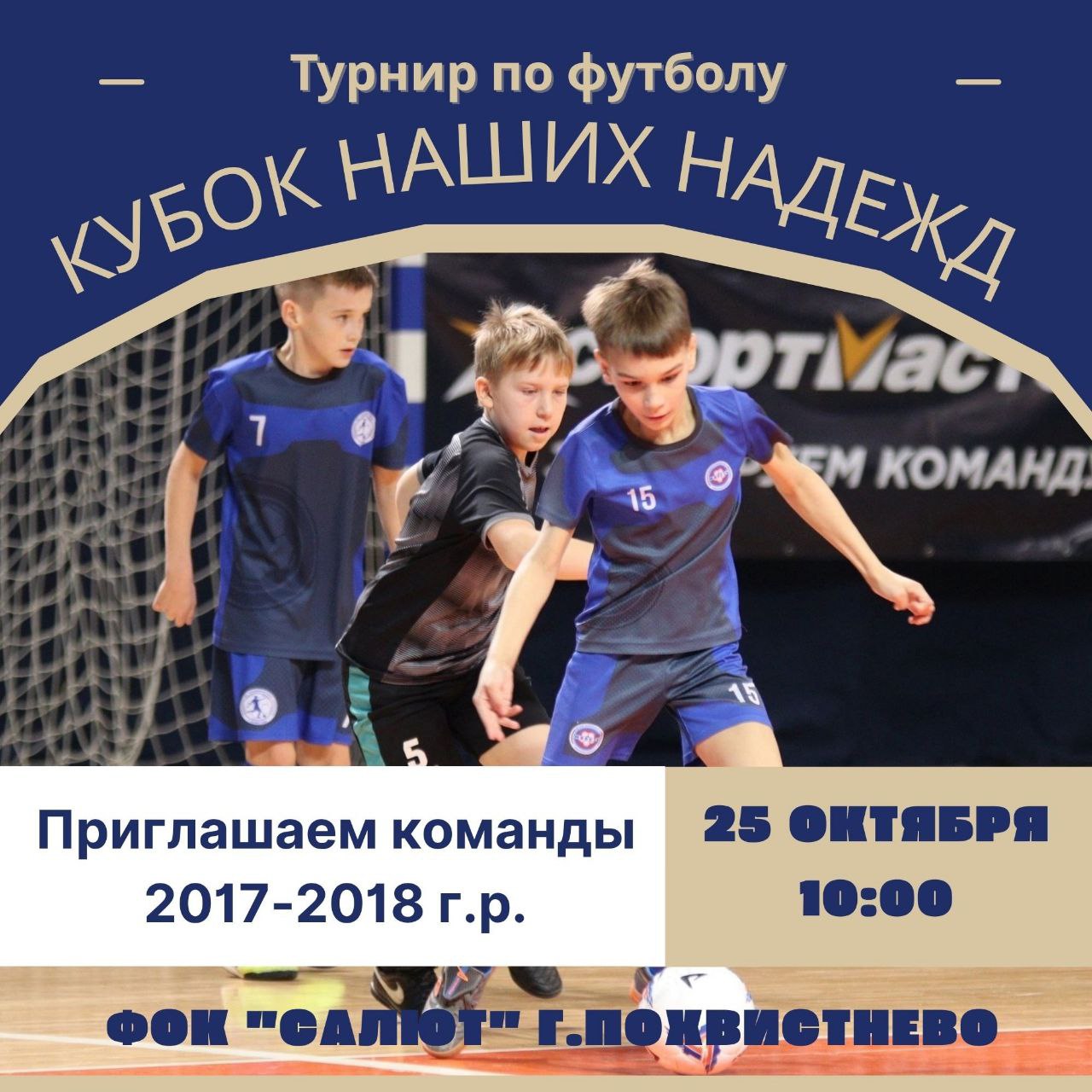 25 октября в г.Похвистнево (МАУ ФОК Салют) пройдет турнир "Кубок наших надежд" , среди детей 2017-2018 г.р.