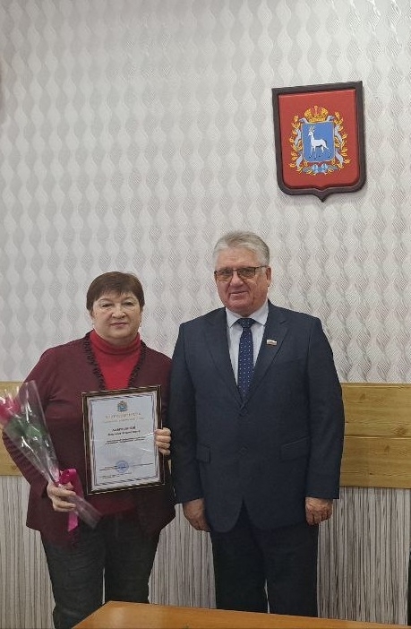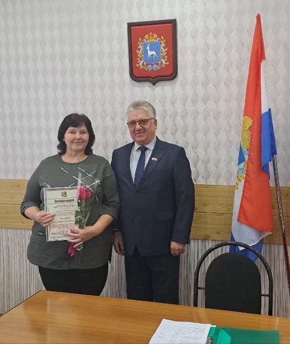 Перед началом заседания председатель Думы городского округа Похвистнево П.Н. Клыков вручил Благодарственное письмо Самарской Губернской Думы активисту-общественнику М.Б. Лаврушиной за многолетний добросовестный труд и активную гражданскую позицию. Также была вручена Почетная грамота Думы городского округа Похвистнево главному специалисту отдела бюджетного учета и отчетности Управления по экономике и финансам Администрации городского округа Похвистнево Н.Г. Волковой за высокий профессионализм и значительный вклад в решение вопросов местного значения.