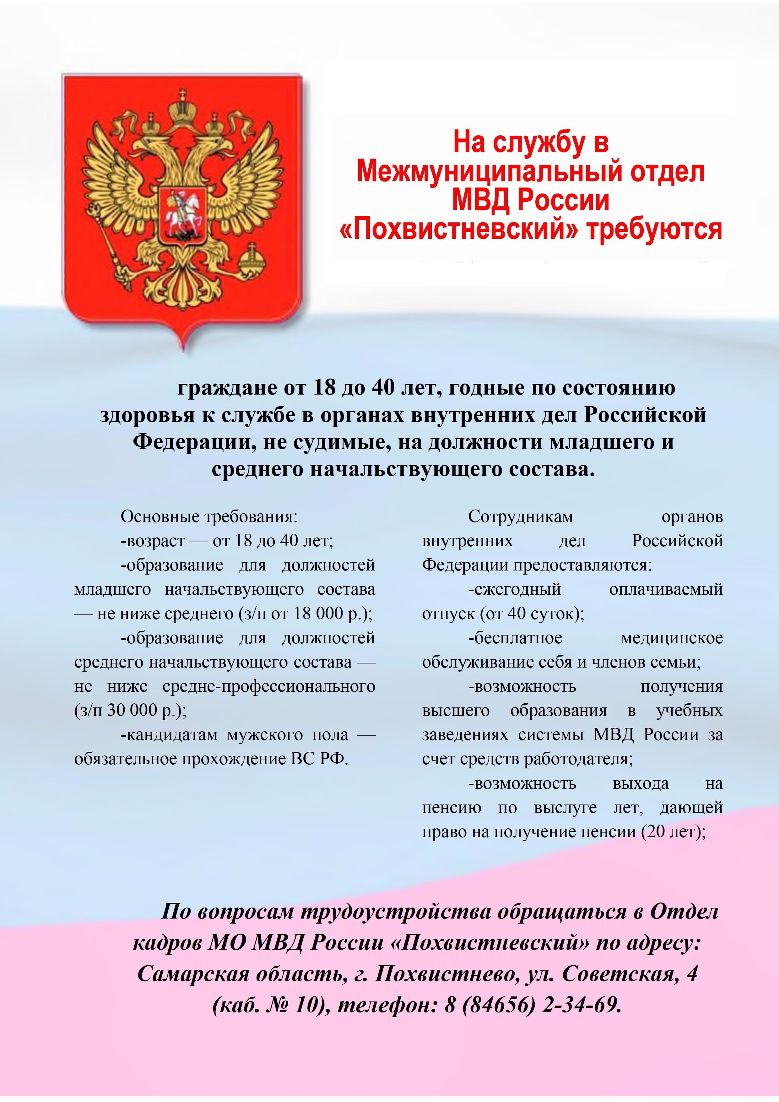 Вакантные должности в МО МВД России «Похвистневский»: