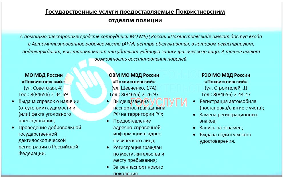 Государственные услуги предоставляемые Похвистневским отделением полиции