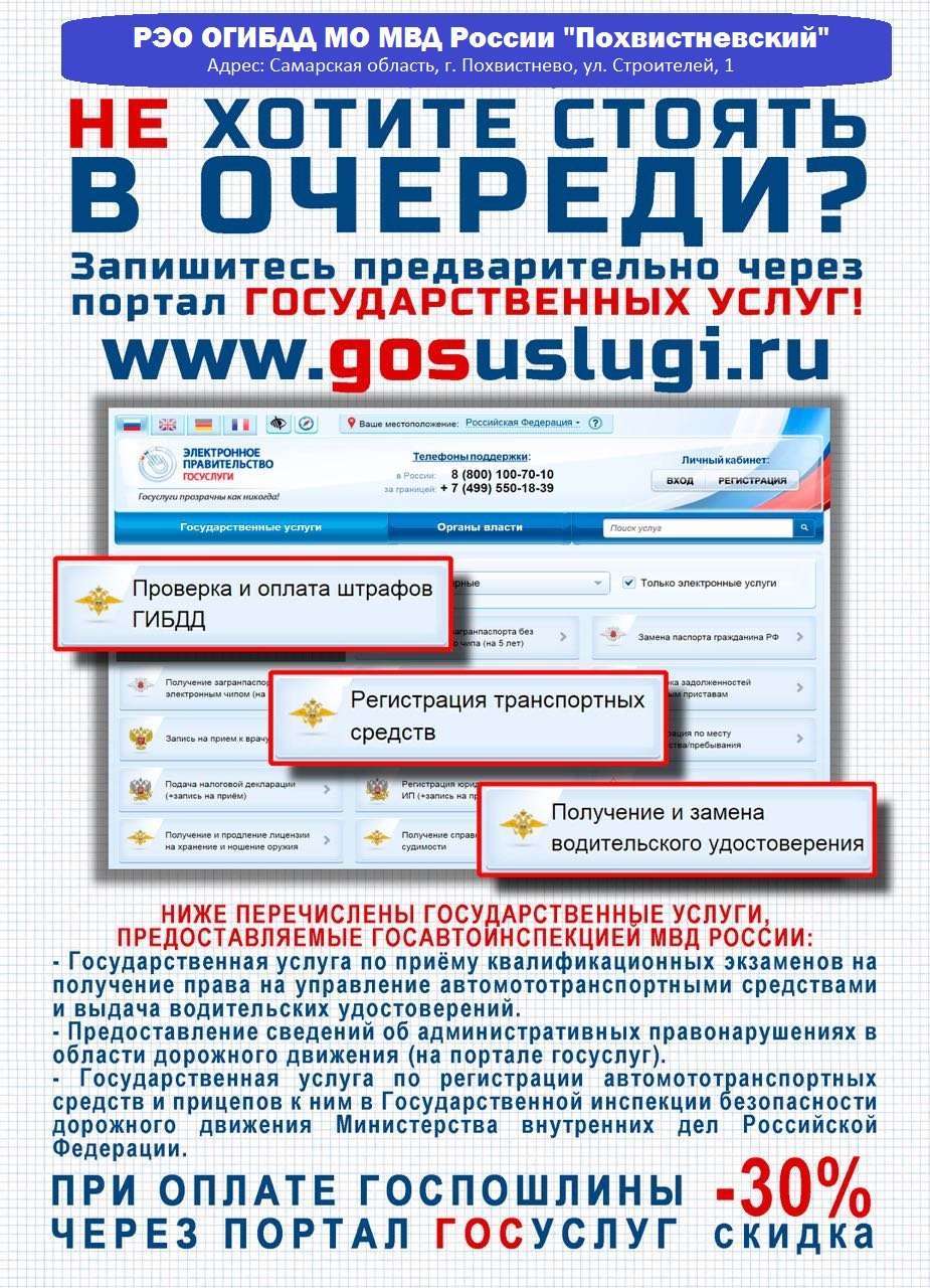 Регистрационно-экзаменационное отделение (РЭО) ГИБДД МО МВД России «Похвистневский» напоминает, что оформление государственных услуг в электронном виде по регистрации транспортных средств и выдаче водительских удостоверений – это просто и удобно!