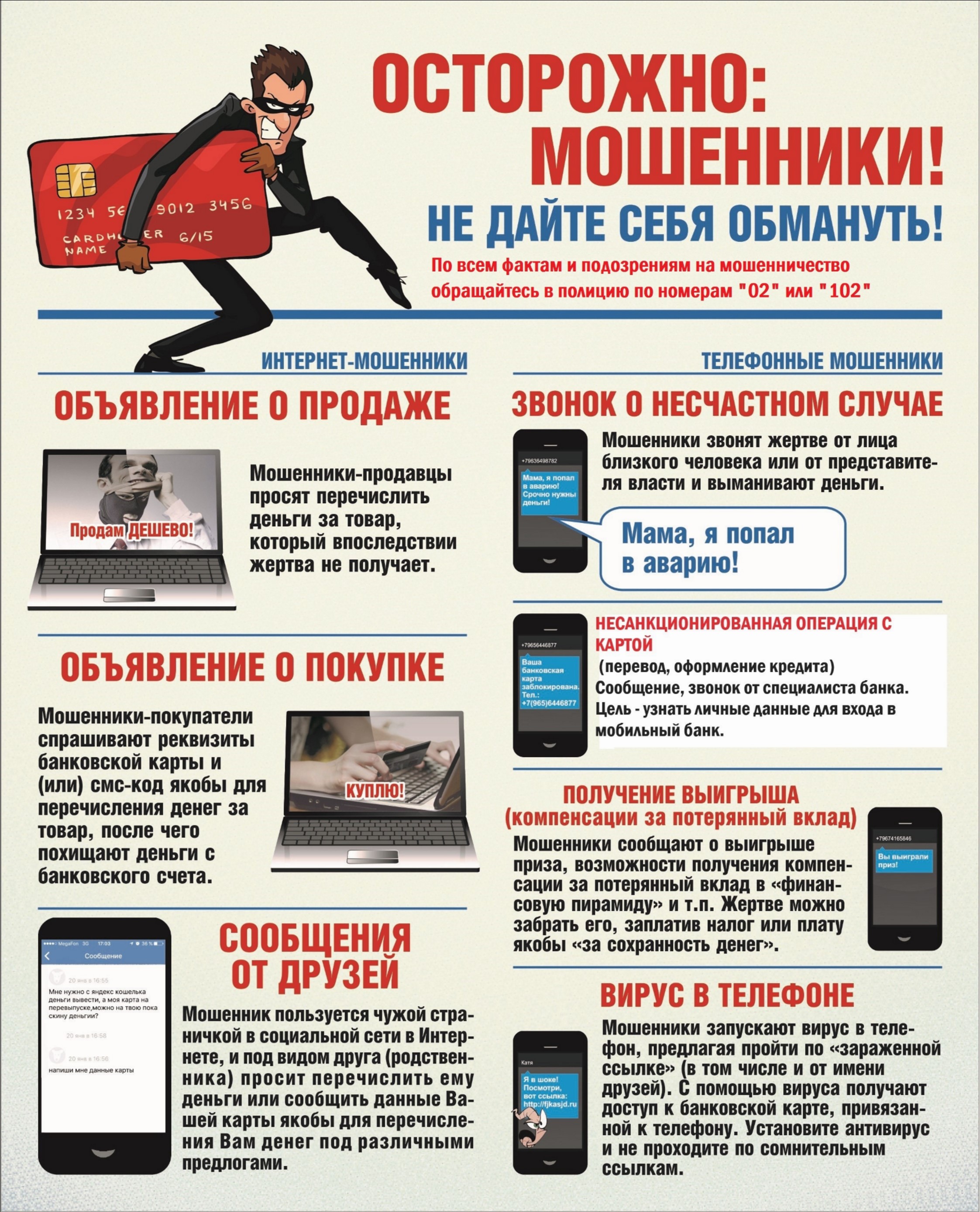 О всех фактах мошенничества незамедлительно обращайтесь в ближайший отдел полиции 02 - с городского, 020 - с мобильного. МО МВД России «Похвистневский»: 8 (84656) 2-34-69. Адрес: Самарская область, г. Похвистнево, ул. Советская, 4