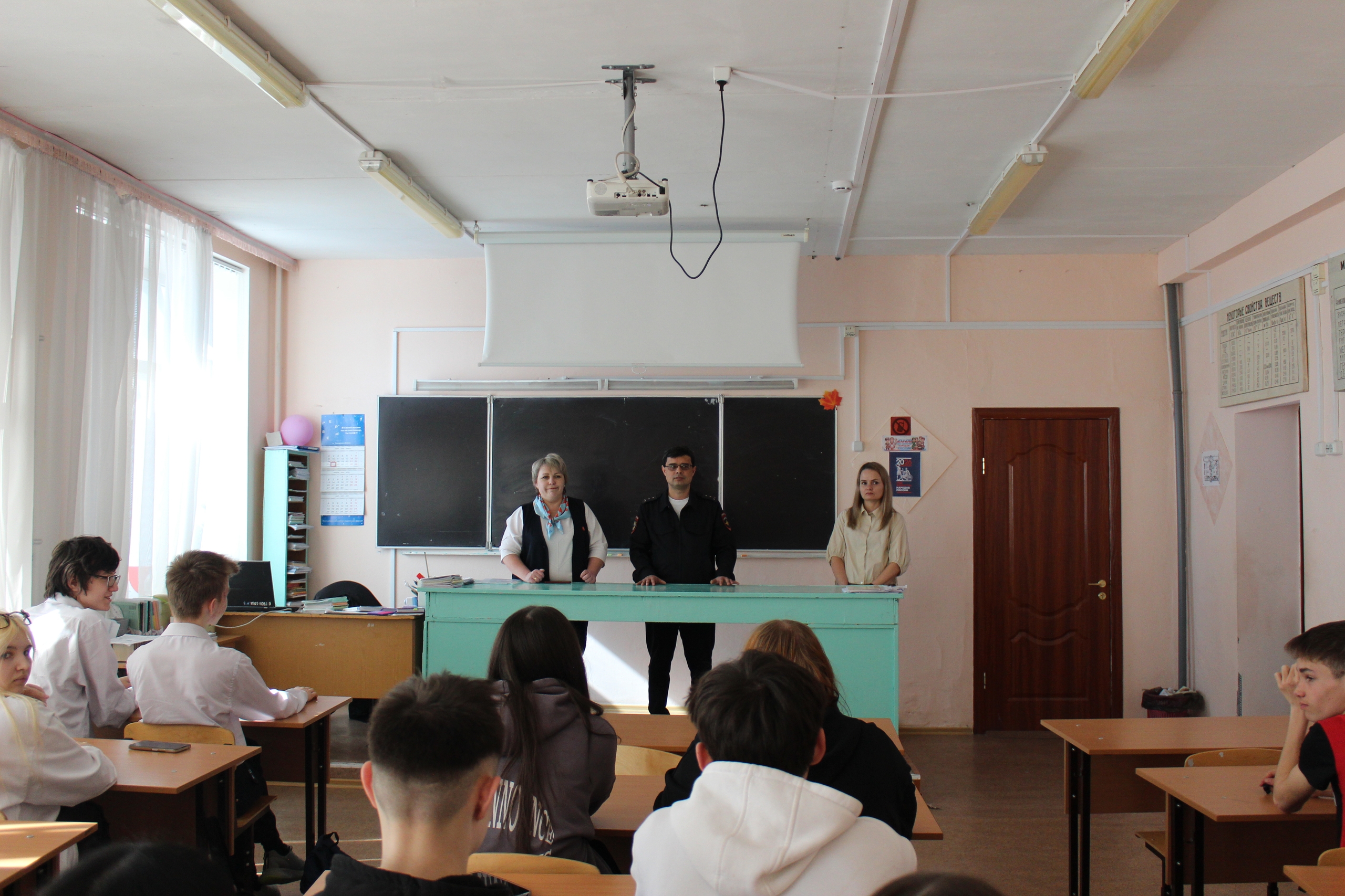 В Похвистневском районе в рамках профориентации стражи порядка совместно с представителями Центра занятости и Общественного совета провели встречу с девятиклассниками школы номер 7 города Похвистнево.