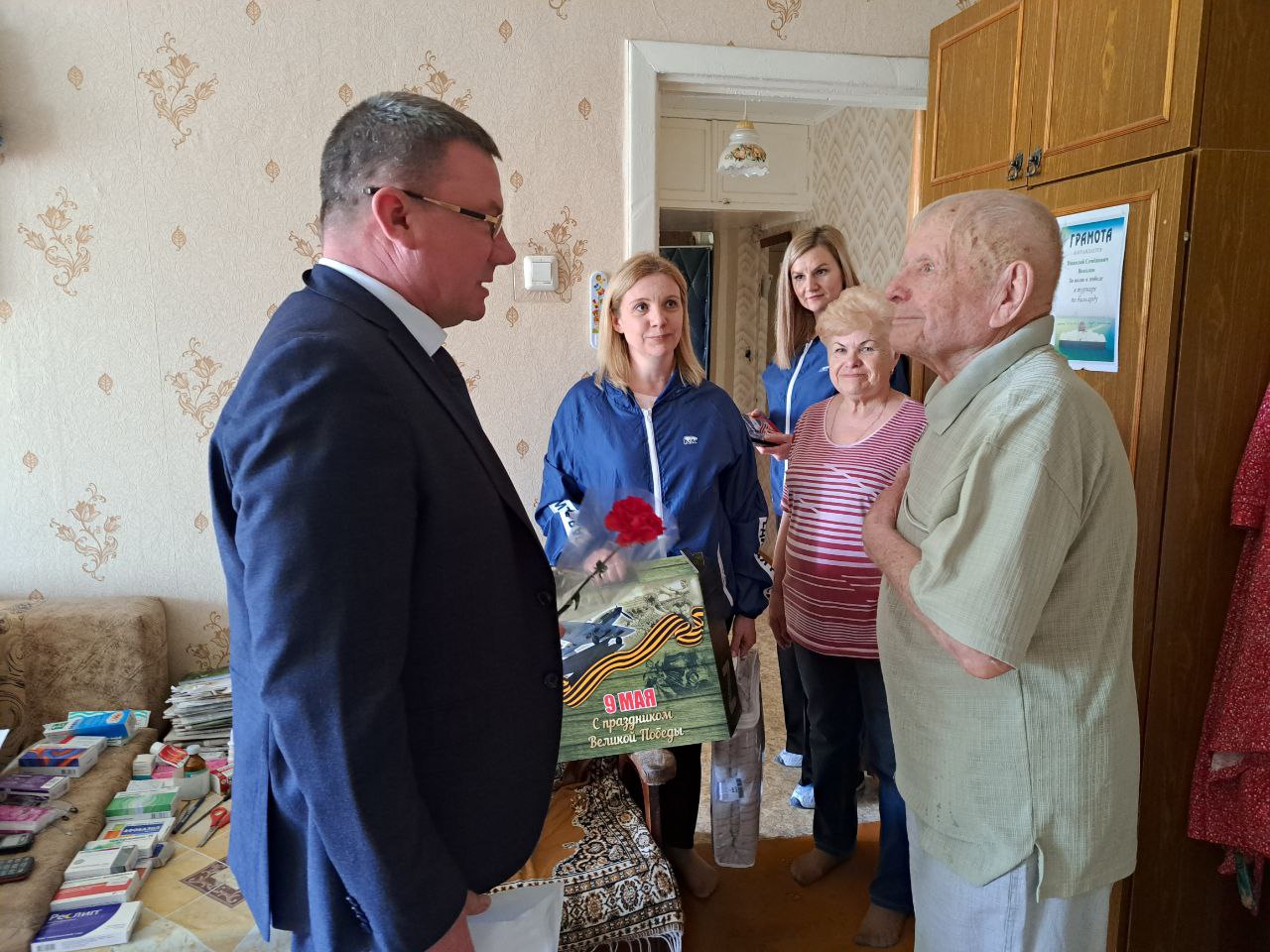 Глава города старается лично поздравить ветеранов и вручить им подарки от Губернатора Самарской области Д.И. Азарова, от ВПП «ЕДИНАЯ РОССИЯ» и от Администрации города.