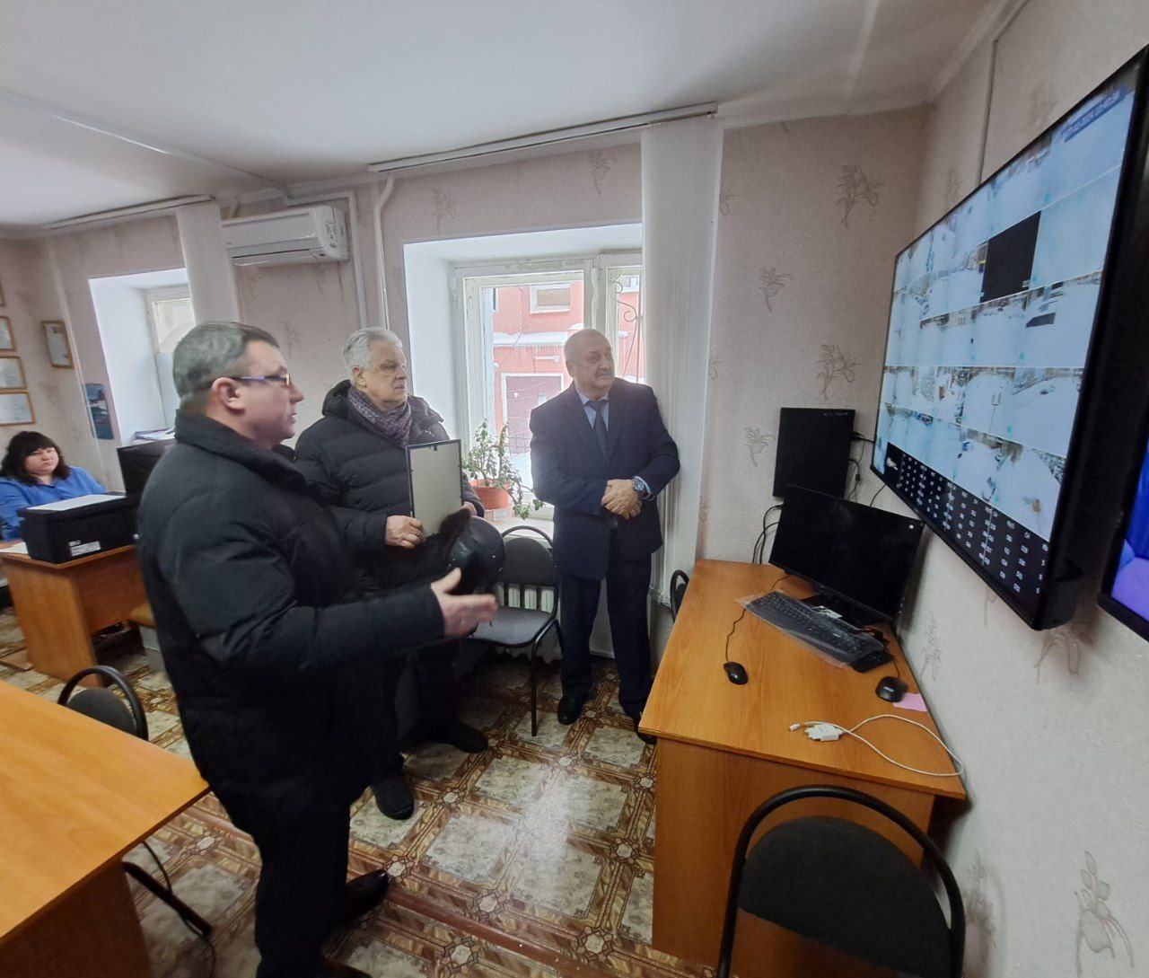 Также Виктор Алексеевич и Глава города Сергей Петрович Попов оценили работу камер видеонаблюдения, установленных в общественных местах города, информация с которых аккумулируется в ЕДДС.