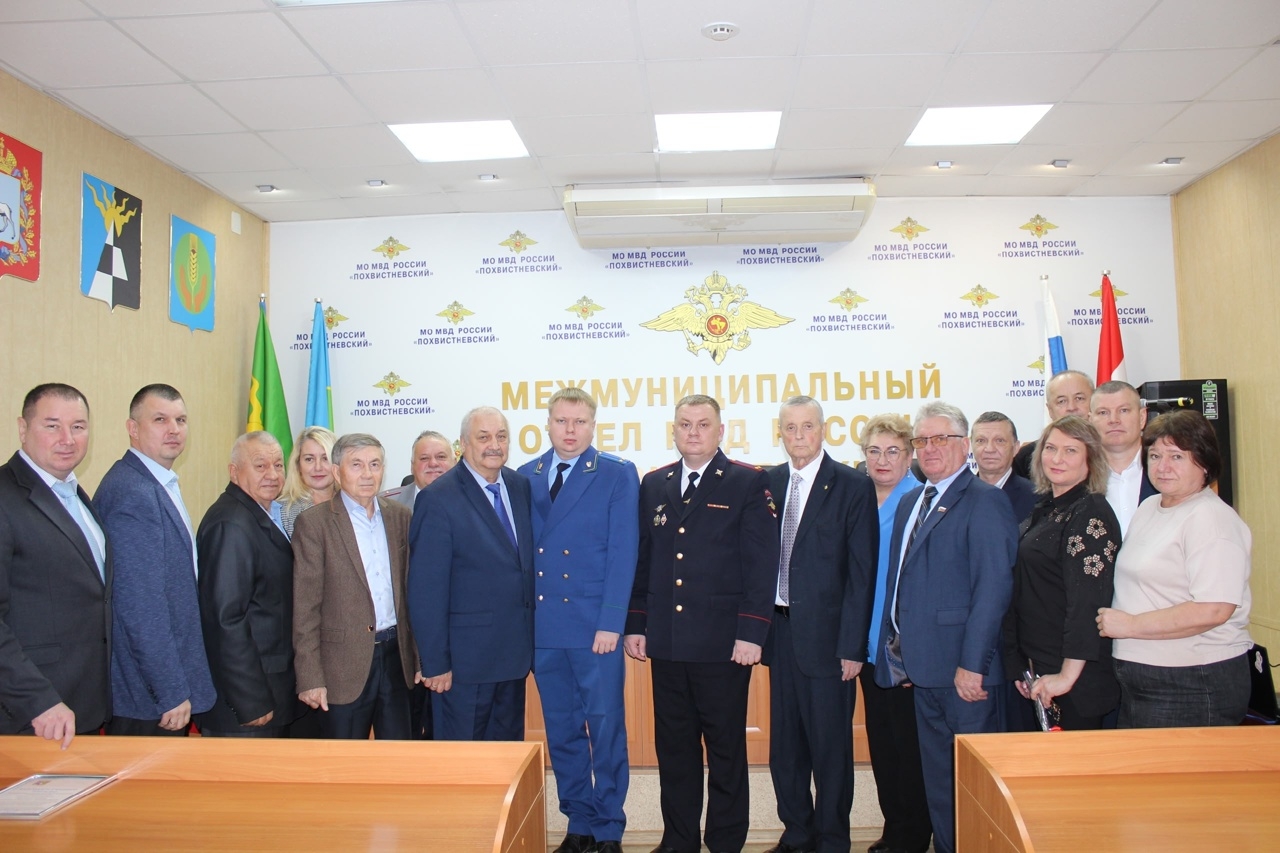 Встреча прошла под председательством Начальника межмуниципального отдела подполковника полиции Дмитрия Акулинина, с участием Заместителя похвистневского межрайонного прокурора советника юстиции Алексея Евдокимова, заместителя главы городского округа Похвистнево Сергея Борисова, Главы муниципального района Похвистневский Александра Шахвалова, председателя думы городского округа Похвистнево Павла Клыкова, председателя собрания представителей муниципального района Татьяны Самойловой, председателя Совета Ветеранов Эдуарда Головачева, Татьяны Вобликовой - председателя Общественного совета при МО МВД России Похвистневский, а также ветеранов межмуниципального отдела.