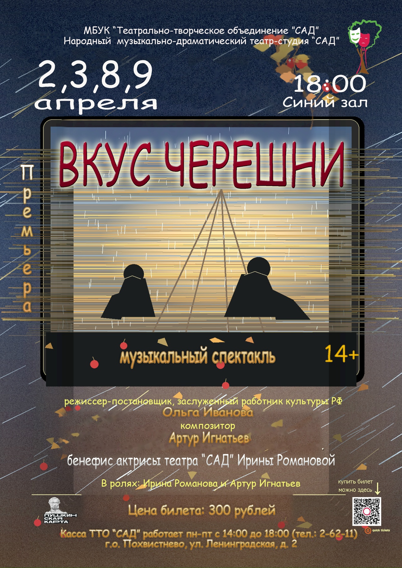 26.03 Народный музыкально‑драматический театр‑студия «САД» с радостью объявляет о премьере музыкального спектакля «ВКУС ЧЕРЕШНИ»