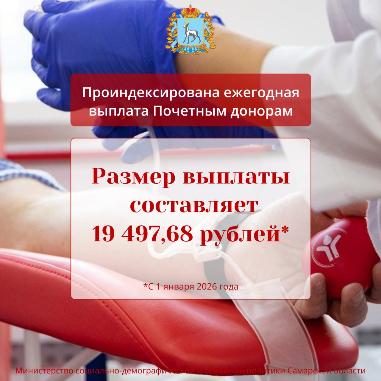 С 1 января 2026 года проиндексирован размер ежегодной денежной выплаты Почетным донорам.