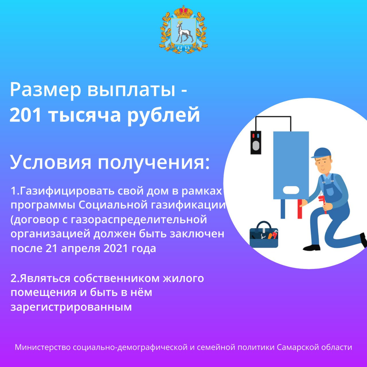 Сегодня в наших карточках рассказываем про единовременную выплату на оплату расходов, связанных с установкой внутридомового газового оборудования. Ее размер в настоящее время составляет 201 тыс. рублей.