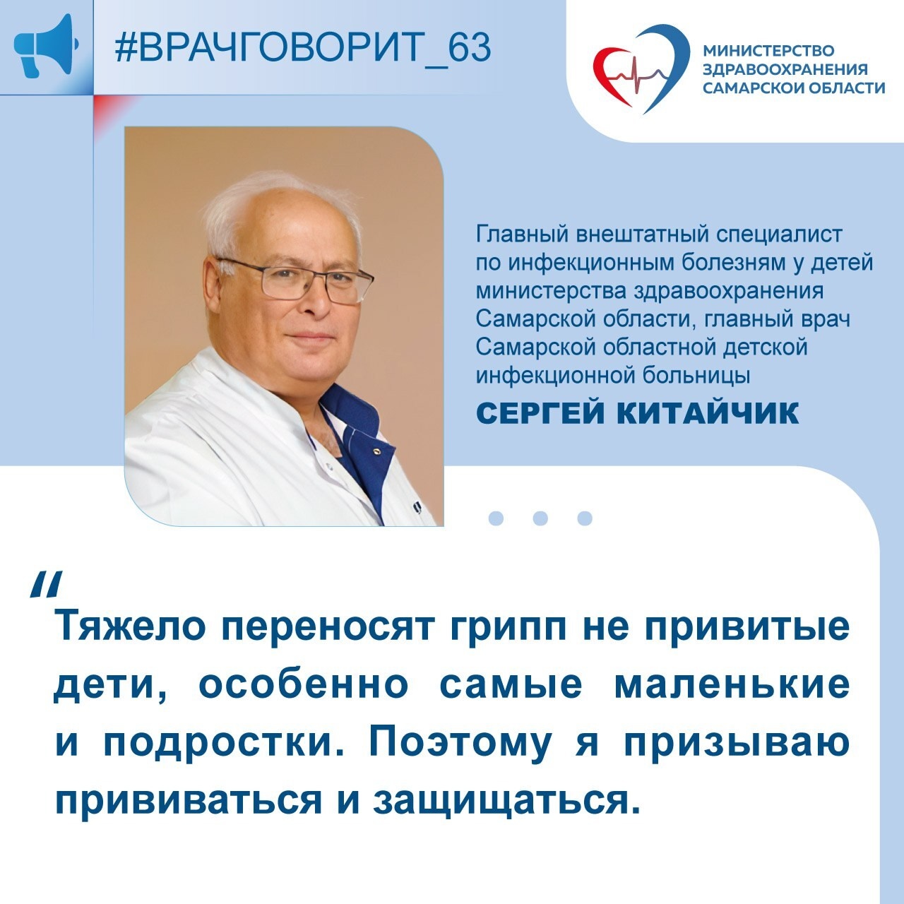 Главный внештатный специалист по инфекционным болезням у детей министерства здравоохранения Самарской области, главный врач Самарской областной детской инфекционной больницы Сергей Китайчик: