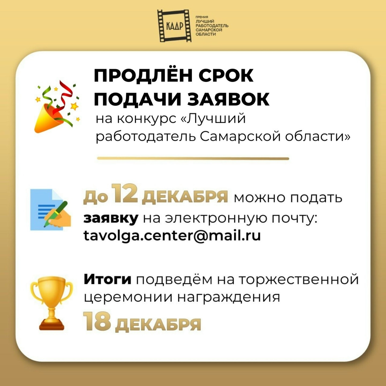 Продлили приём заявок на конкурс «Лучший работодатель Самарской области»!
