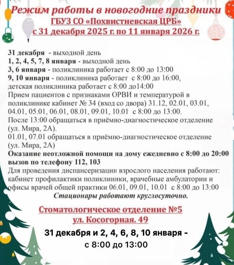 4, 5, 7, 8 января 2026г. амбулаторно-поликлиническая служба не работает