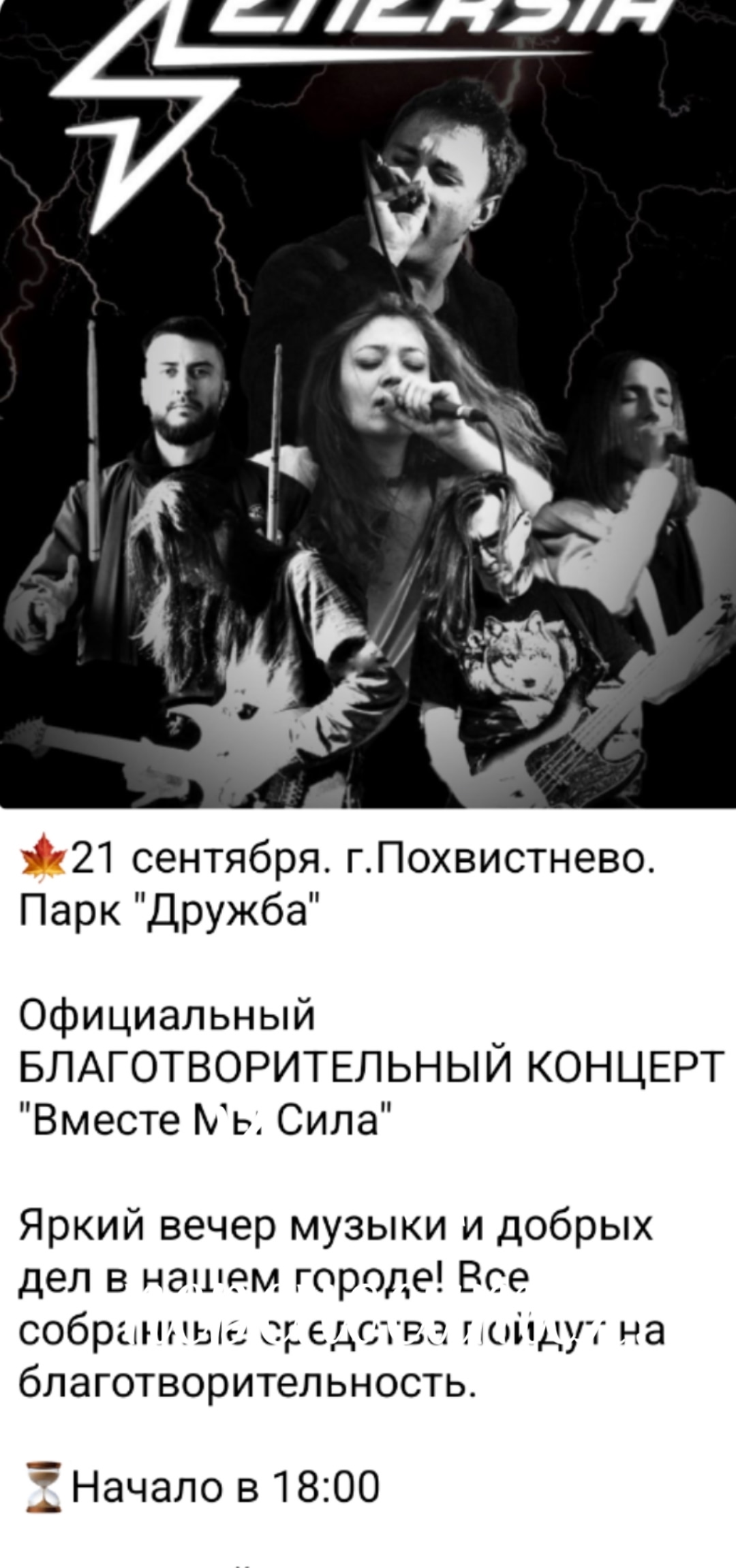 Группа Еnersia переносит свой благотворительный концерт на другую дату, в связи с заболеванием участников.