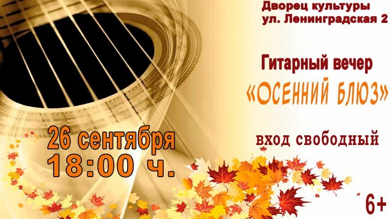 26 сентября в 18-00 во Дворце культуры г.Похвистнево пройдет гитарный вечер "Осенний блюз"