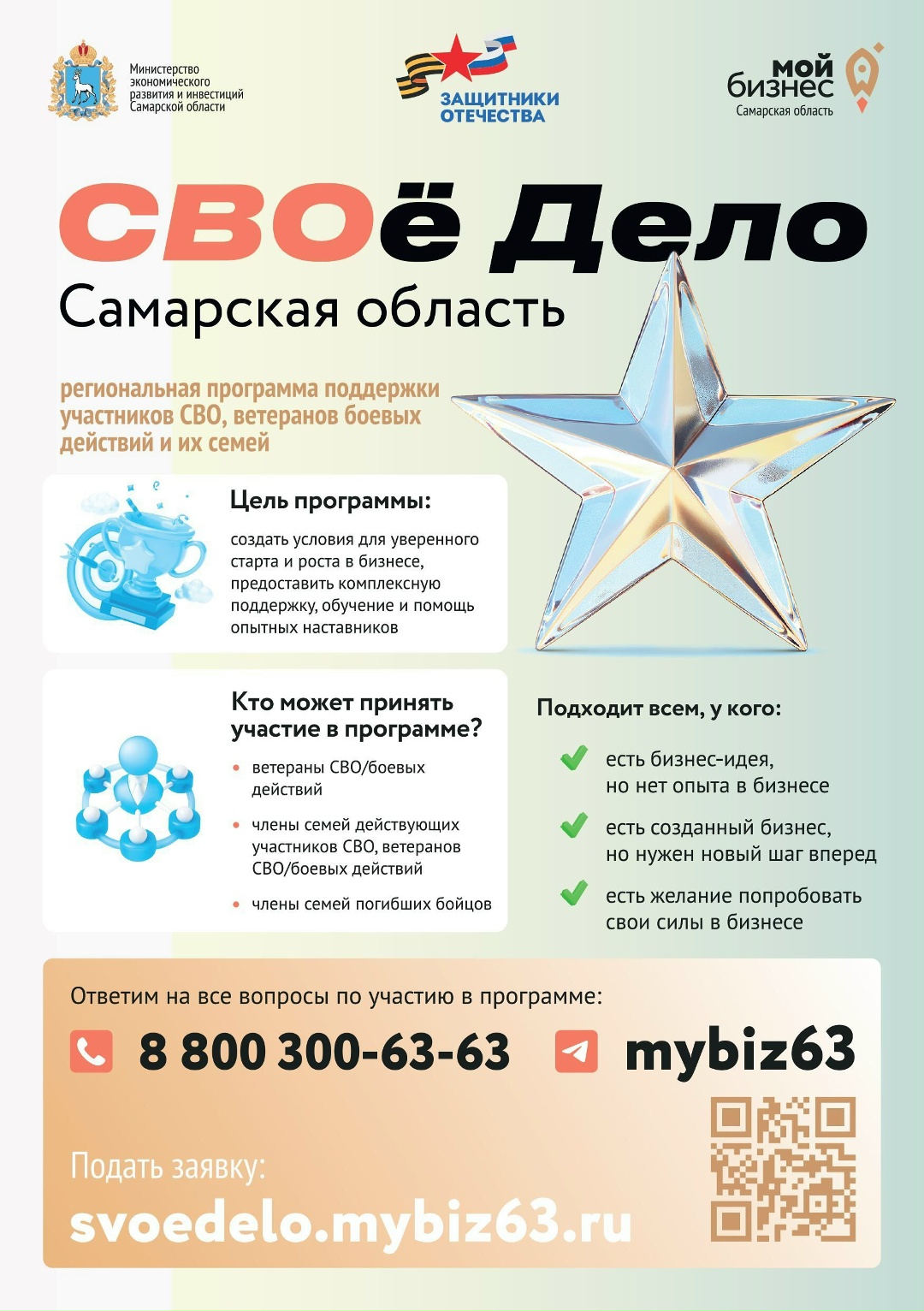 У ветеранов СВО и членов их семей есть возможность подать заявки на второй поток программы «СВОё Дело. Самарская область»